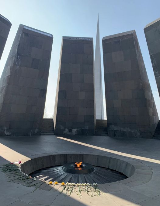 (Right) (Tsitsernakaberd’, The Armenian Genocide Memorial complexand Memory Flame, constructed from 1965-67, as of 2020. Produced and owned by Paul Alex Treadaway [author], 2020)